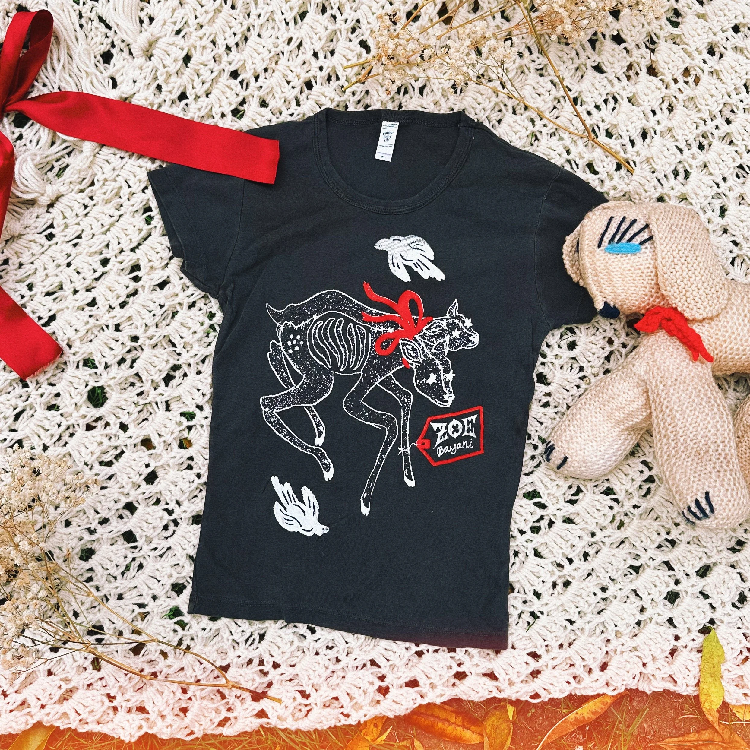 Baby Tee (Deer) $30.00 Baseball Tee $25.00 T-shirt (Deer) $35.00 Cassette Tape $12.00 Baby Tee (Cherry) $25.00 T-Shirt (Cherry) $30.00 Sweatshirt $45.00 Tote $10.00